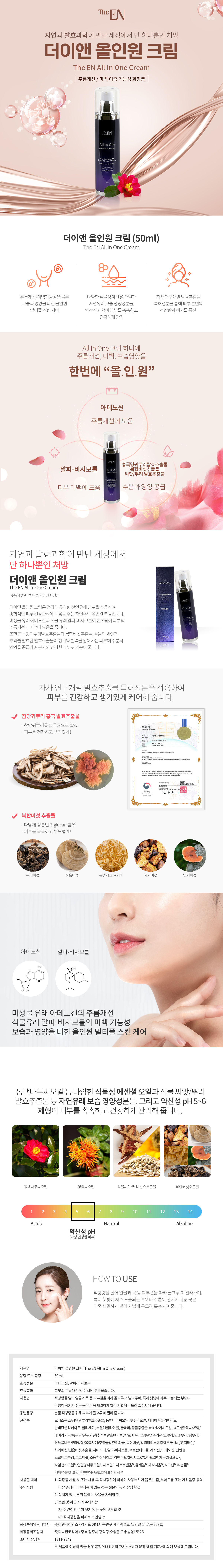 건강에 유익한 천연유래 성분을 사용하며 종합적인 피부 건강관리에 도움을 주는 자연주의 올인원 크림입니다.